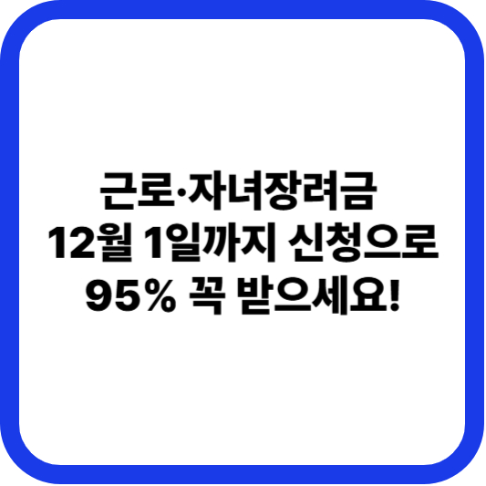 2024년 귀속 장려금 신청의 마지막 기회, 12월 1일입니다! 대상이 되시는 분들은 기한 내에 꼭 신청하셔서 놓쳤던 장려금 95%라도 꼭 받아가세요! 파이팅! 💪