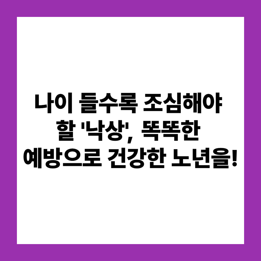 낙상은 고령층에게 골절이나 심각한 부상을 초래할 수 있는 위험한 사고입니다. 하지만 미리 알고 준비하면 충분히 예방할 수 있습니다. 낙상의 위험성을 이해하고, 일상에서 실천할 수 있는 현실적인 예방법을 배워 건강한 노년을 준비하세요.