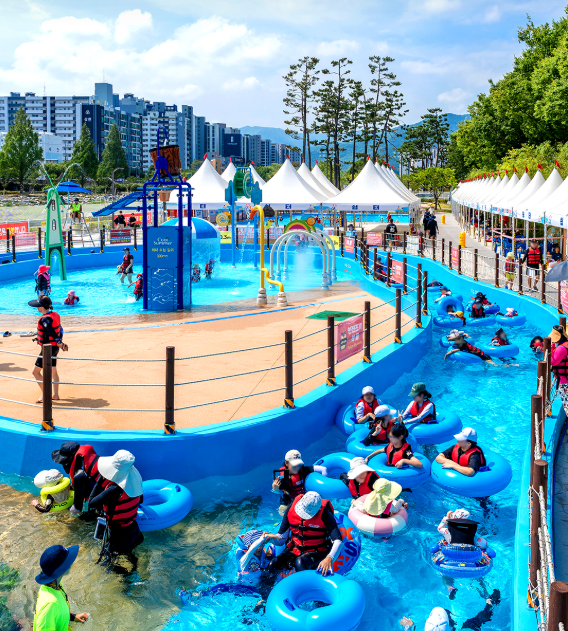 - 철저한 안전 관리: 수상 안전요원 25명을 포함한 총 57명의 전문 운영 인력을 배치하여 물놀이장 전 구간에 걸쳐 세심하고 철저한 안전 관리가 이루어지고 있습니다. 아이들과 함께 방문하는 가족들도 안심하고 물놀이를 즐길 수 있습니다.
