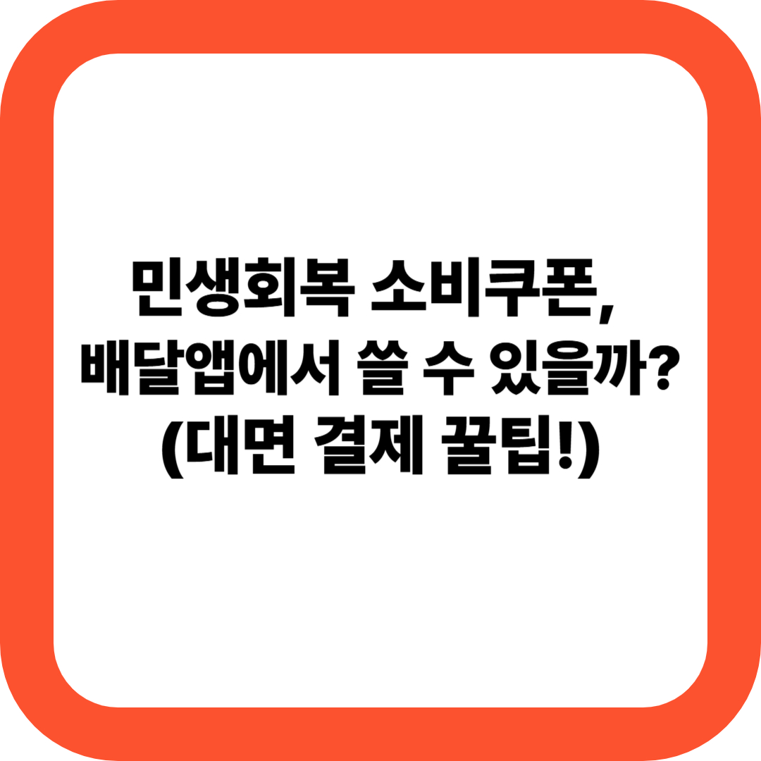 민생회복 소비쿠폰을 받으셨는데, "집에서 편하게 배달음식 시켜 먹을 때도 쓸 수 있을까?" 궁금하셨죠? 아쉽게도 모든 배달 결제에 사용 가능한 건 아닙니다. 헷갈리지 않고 정확하게 민생회복 소비쿠폰을 배달앱에서 활용하는 방법을 알려드릴게요. 핵심은 바로 '대면 결제'입니다.