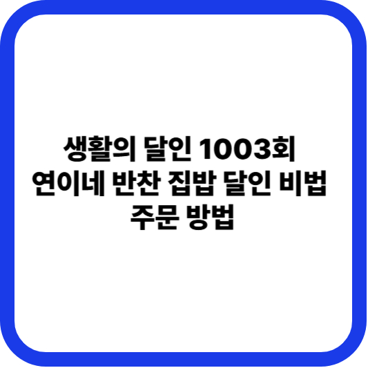 안녕하세요! 😉 오늘은 **'생활의 달인 1003회'**에 소개되어 입소문이 자자한 서울 강동구의 명품 반찬가게, '연이네 반찬'을 자세히 소개해 드릴게요! ✨ 집밥의 온기와 정직한 손맛을 그대로 담아 많은 분들이 믿고 찾는 이곳의 특별함을 꼼꼼히 파헤쳐 보겠습니다. 👍