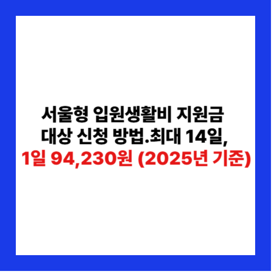 서울형 입원 생활비 신청하기💸 2025년 지원 규모 및 14일의 구성