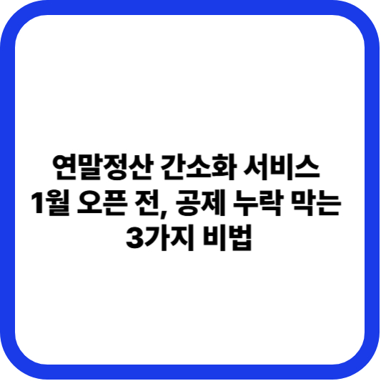 2026년 1월 간소화 서비스 시작 전에 환급액을 극대화하려면, 이 글에서 안내하는 **3가지 필수 확인 항목**을 12월 내에 미리 점검하고 준비해야 합니다. 꼼꼼한 사전 준비로 최대 환급액을 확보하시길 바랍니다.