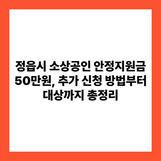 물가 상승과 경기 둔화로 힘든 시간을 보내고 계실 정읍시 소상공인 여러분을 위해 안정지원금 추가 신청을 시작합니다. 이번 지원금은 1인당 50만원 상당의 정읍사랑상품권으로 지급되니, 아직 신청하지 못하신 분들은 이번 기회를 놓치지 마세요.
