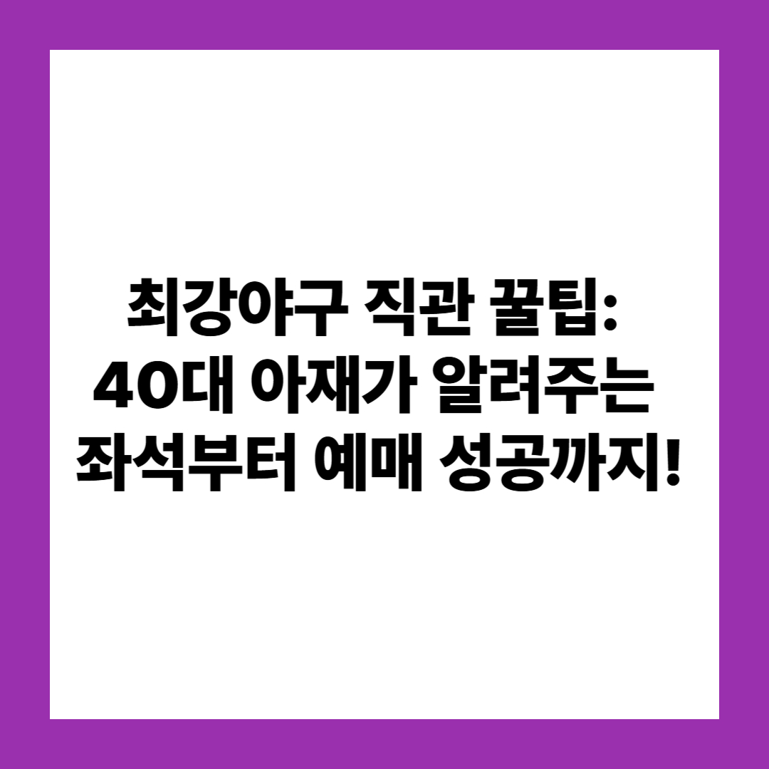 우리들의 추억이 담긴 야구장에서 새로운 추억을 만드는 것, 바로 최강야구 직관의 묘미입니다. 이 팁들을 잘 활용하셔서 즐겁고 편안하게 경기를 관람하시고, 경기장에서 시원한 맥주 한 잔과 함께 승리의 감동을 만끽하시길 바랍니다.
