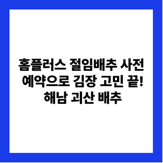김장철이 다가오면서 주부들의 김장 고민도 깊어지고 있죠? 😫 배추 가격부터 절이는 과정까지, 만만치 않은 김장 준비를 **홈플러스 절임배추 사전 예약**으로 한결 쉽게 해결해 보세요. 👏 특히 올해는 믿을 수 있는 해남과 괴산 두 산지의 절임배추를 선보이며 선택의 폭을 넓혔고, 원하는 날짜에 맞춰 매장 픽업 또는 택배 배송을 선택할 수 있어 편리함이 역대급이랍니다!