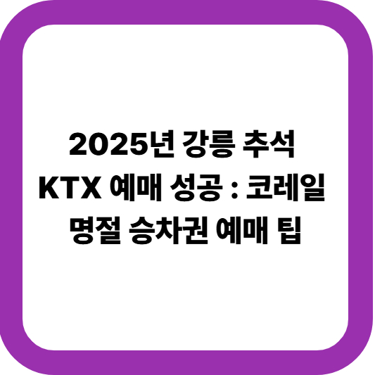 추석 연휴 강릉역 KTX 예매 때문에 고민이시죠? 매년 반복되는 예매 전쟁에서 벗어날 수 있는 특별한 노하우가 있습니다. 이 글만 읽으면 남들이 모르는 간단한 방법으로 원하는 시간대 표를 확보할 수 있어요!