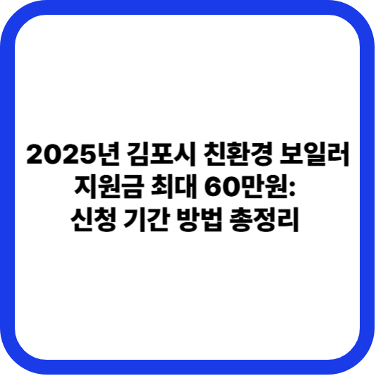 난방비 부담을 줄이고 깨끗한 공기를 만드는 **친환경 보일러** 교체 지원 사업이 2025년 연말을 앞두고 마감을 앞두고 있습니다. 김포시와 경기도가 함께 추진하는 이번 사업은 특히 기후 위기에 취약한 계층의 겨울나기를 돕기 위해 마련되었으며, 1대당 **최대 60만원**의 보조금을 지원합니다. 지원은 **선착순**으로 진행되며, **보조금 예산 소진 시 조기 마감**될 수 있습니다. 교체를 계획 중이라면 서둘러 신청해야 합니다.