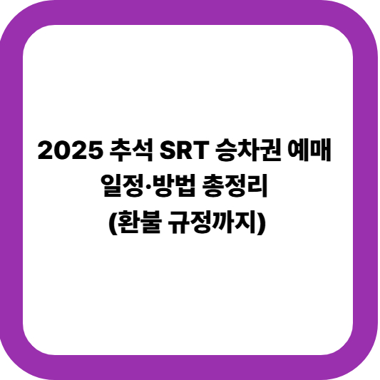 추석이 다가오면 가장 먼저 준비해야 할 것이 바로 귀성길 교통편입니다. 특히 SRT 승차권 예매는 매년 빠르게 매진되기 때문에 놓치면 불편이 커지죠. 2025 추석 SRT 승차권 예매 일정, 방법, 환불 규정까지 한 번에 정리해드립니다. 지금 확인하지 않으면 금세 마감될 수 있으니 꼭 아래 내용을 확인하세요!